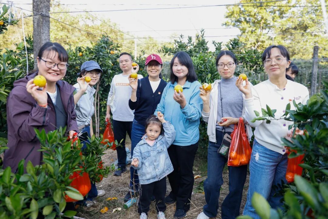 队伍又来到橘子园,大家兴致勃勃穿梭于金灿灿的桔林间,通过亲手采摘、亲子互动,不断体验丰收乐趣,脸上洋溢着甜蜜的笑容。