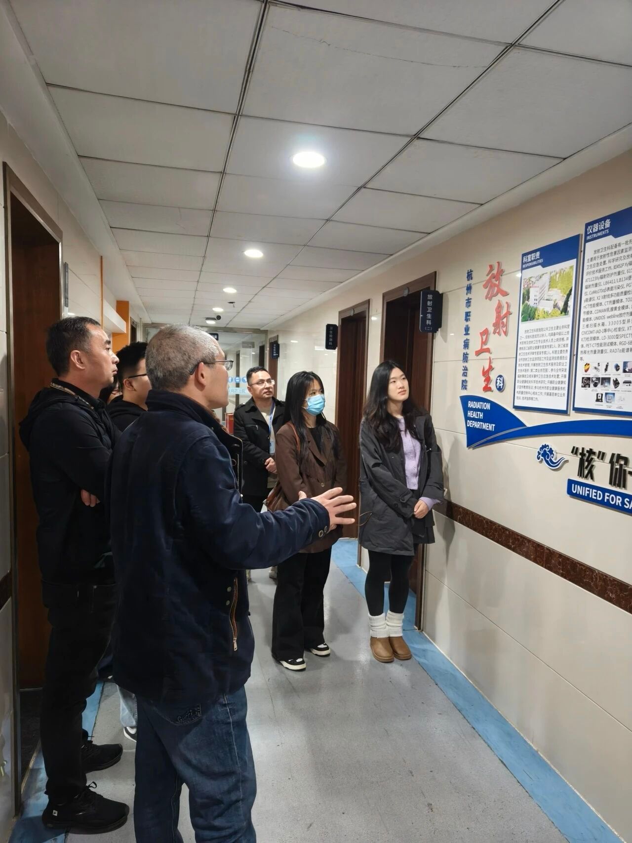 在赵国云副科长的陪同下,学院师生与家长代表先后参观了中医综合治疗室、职业卫生科、真菌实验室、理化科及辐射遗传实验室等多个特色科室。各科室负责人就各科室的功能定位、技术优势与运营模式进行了详细讲解,充分展示了其在职业病诊疗、公共卫生监测等领域取得的先进技术与丰硕成果。
