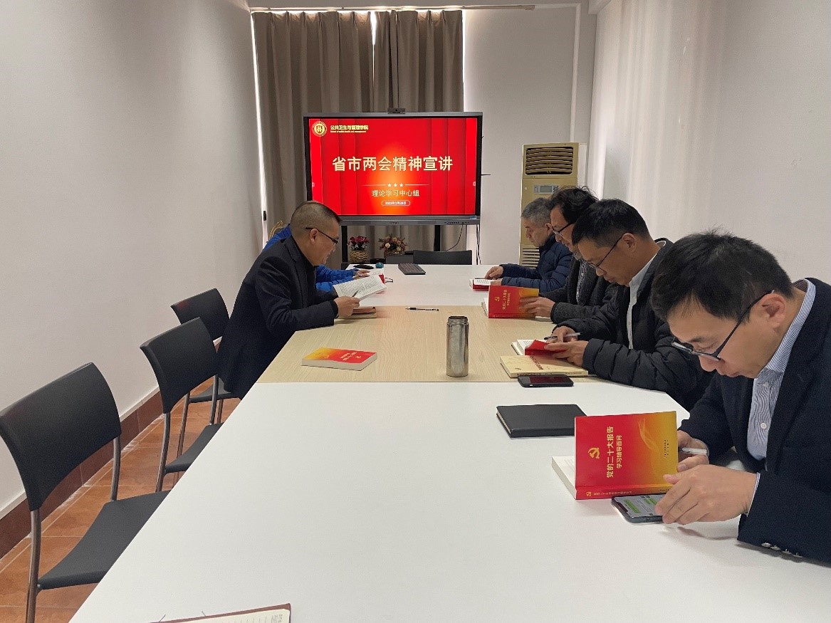 马洪君介绍了省市两会的基本情况,带领大家共同学习了省市政府工作报告,重点解读在高等教育、医疗、人才等领域工作统筹谋划。他指出,省市两会是在全面贯彻落实党的二十大精神开局之年、“八八战略”实施20周年之际召开的重要会议,认真领会省市政府工作报告中提出目标和各项重点工作任务,切实把力量和智慧凝聚到实现党的二十大确定的各项任务上来,不断提升高质量发展本领,提升服务师生本领、防范化解风险本领,推动学院高质量发展,助力学校“双一流”创建、高水平医科大学建设。