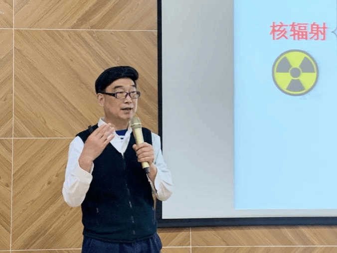 蔡建明教授围绕“核辐射安全与核应急医学救援”主题,就核辐射所致主要伤类、核辐射安全形势以及核应急医学救援三个方面展开介绍。随后蔡建明教授强调,“大剂量”核辐射才会导致各种特殊的损伤,当今人类面临的核辐射风险依然存在,必须提高意识,抓紧建立核安全防范体系,有备无患,确保一方安全。随后,蔡建明教授通过举例河南杞县“卡源事件”,福岛核电站爆发后的“抢盐风波”等案例,告诉同学们核辐射存在于日常生活中,需要科学认识核辐射,千万不要“谈核色变”。蔡教授指出,辐射是一把“双刃剑”,我们的使命任务是尽最大的努力降低辐射对人类的危害,让辐射更好地造福人类。