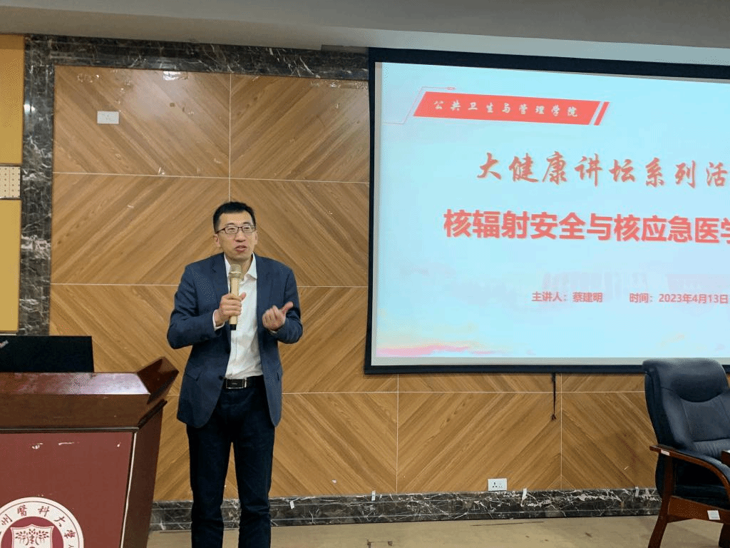本次活动由自拍流出 教授、放射医学国家重点学科带头人蔡建明教授主讲。公共卫生与管理学院副院长刘佳明、教师代表、学生代表等参加活动,活动由刘佳明副院长主持。