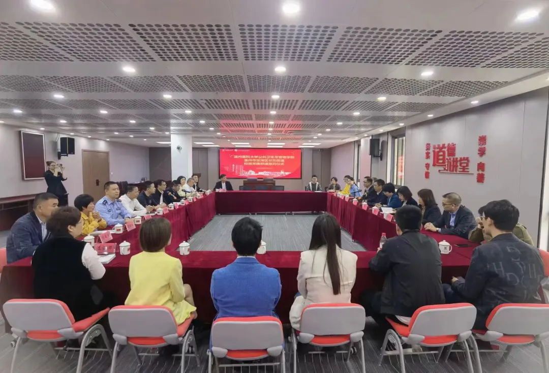 孔德亮向与会人员介绍状元街道基本情况,指出将以此次校地党建联建为契机,与温医大成为“共富”路上的亲密战友,携手共进。一是党建引领,构建联建“大格局”。充分发挥双方特长和优势,推动党建工作迸发活力。“联”出新发展,“建”出新效能,构建资源互通、功能互衬、服务互帮大格局。二是同心互建,共下民生“一盘棋”。街道将进一步梳理资源清单、发挥资源优势,围绕全民健康、个人防护、老龄健康等服务,实现信息互通、阵地共用、活动共办,变“单兵作战”为“抱团发展”。三是深化服务,迈上发展“新台阶”。坚持需求导向、精准优化服务,从思路、资源、项目等方面为高质量发展健康事业注入持续稳定的“活水”,实现“1+1大于2”的协同效应。