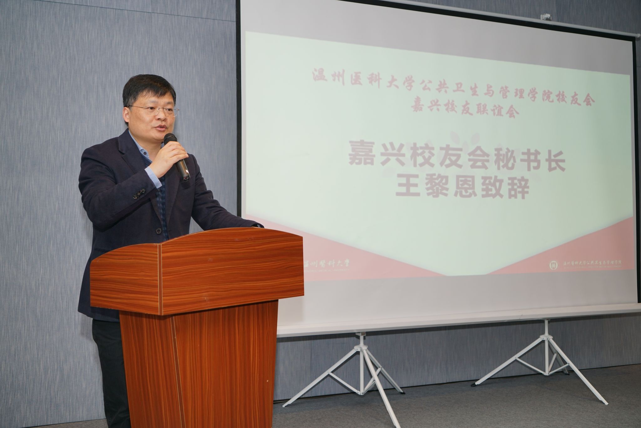 王黎恩对温医大公共卫生与管理学院嘉兴校友联谊会的成立表示衷心祝贺,他希望校友会不仅能为母校与校友之间以及各地校友之间开展各种交流和合作提供有力的支撑和组织保障,也成为校友和母校联系的桥梁、合作的舞台、感情的纽带,各地区校友会能继续加强交流与合作,凝聚力量服务社会。
