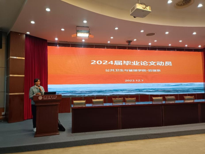 12月7日下午,公共卫生与管理学院在旭光厅召开2024届管理系毕业实习动员会暨毕业论文动员会。学院党委副书记季好、劳动与社会保障专业教研室主任崔仕臣、市场营销专业教研室主任张驰、公共事业管理专业教研室主任张美丽,毕业论文秘书陈字、郑海埃,学工办主任滕杨杨及仁济学院辅导员王翩翩、刘琦参会,会议由教学办肖丽彬主持。