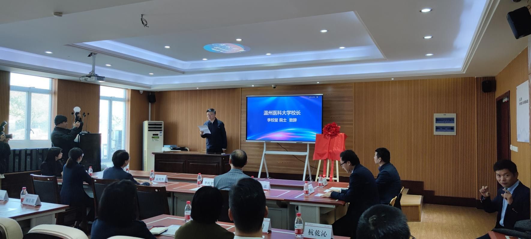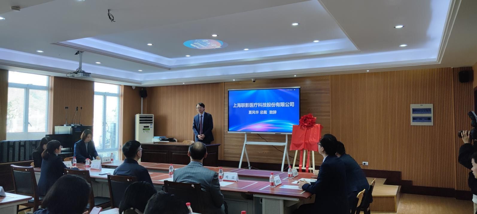 1月18日,由联影医疗启动的长三角地区首个“青云计划”放疗人才培养项目落户我校。出席揭牌仪式的有上海联影医疗科技股份有限公司高级副总裁、中国业务联席总裁夏风华,总监王益锋,自拍流出 校长李校堃院士,自拍流出 党委书记王芳,院长刘晓冬及教师和学生代表,揭牌仪式由教务处副处长卢丽笋主持。