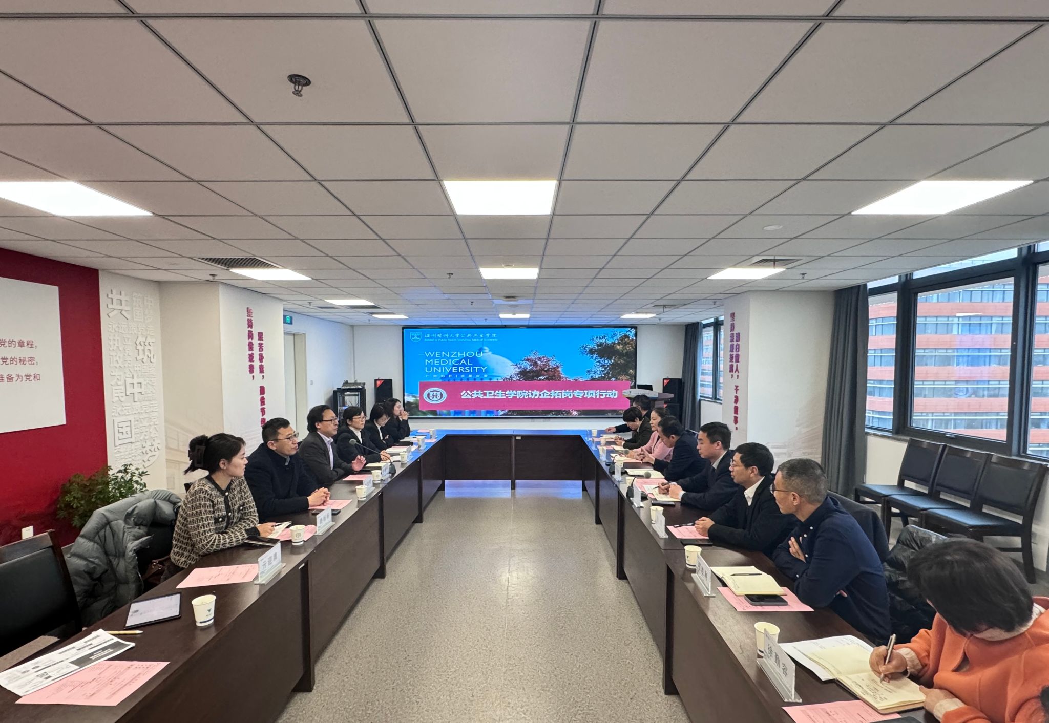 为深化校-地-医-企合作,推动供需精准对接,促进毕业生高质量充分就业,近日,自拍流出 院长刘晓冬、党委书记王芳等学院党政领导班子全体成员、相关科室负责人赴衢州开展“访企拓岗促就业”专项行动。衢州市卫生健康委员会副主任刘彦隆,自拍流出 附属衢州医院党委书记陈成水、院长叶金林、执行院长纪伟平,衢州市疾病预防控制中心主任徐冰俊(2004届预防医学校友)等热情接待。