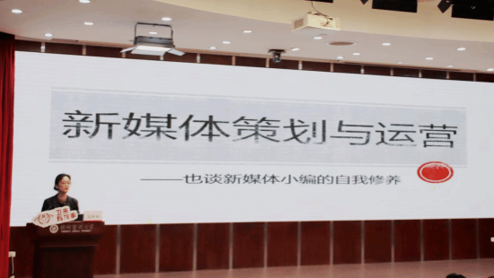 温彬彬老师首先为同学们介绍了学校主要的新媒体平台,“我们经常讲‘官微官微’,‘官’就是代表权威,‘微’其实可以解释为‘以小见大’‘见微知著’,利用大家碎片化上网时间,用大家容易接受的方式,将我们想讲的故事传递给大家。”温老师从新媒体内容策划要“上承天气”也要“下接地气”的两个角度为同学们提供了选题的角度与思路,强调要高站位策划新闻选题,为学校争创“双一流”提供支持,要高网感贴近校园生活,为师生工作学习提振信心,确保全校宣传思想文化工作战线成为让党放心、让师生信赖的坚强堡垒。