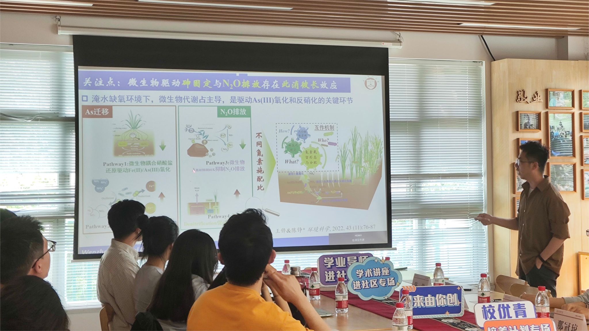 陈铮老师以实际案例,将抽象的理论知识与具体的实践相结合,为师生们分享关于微生物胞外电子传递在环境修复领域的相关研究内容,探讨这一机制在治理水体及土壤金属污染中的实际应用和科学意义。