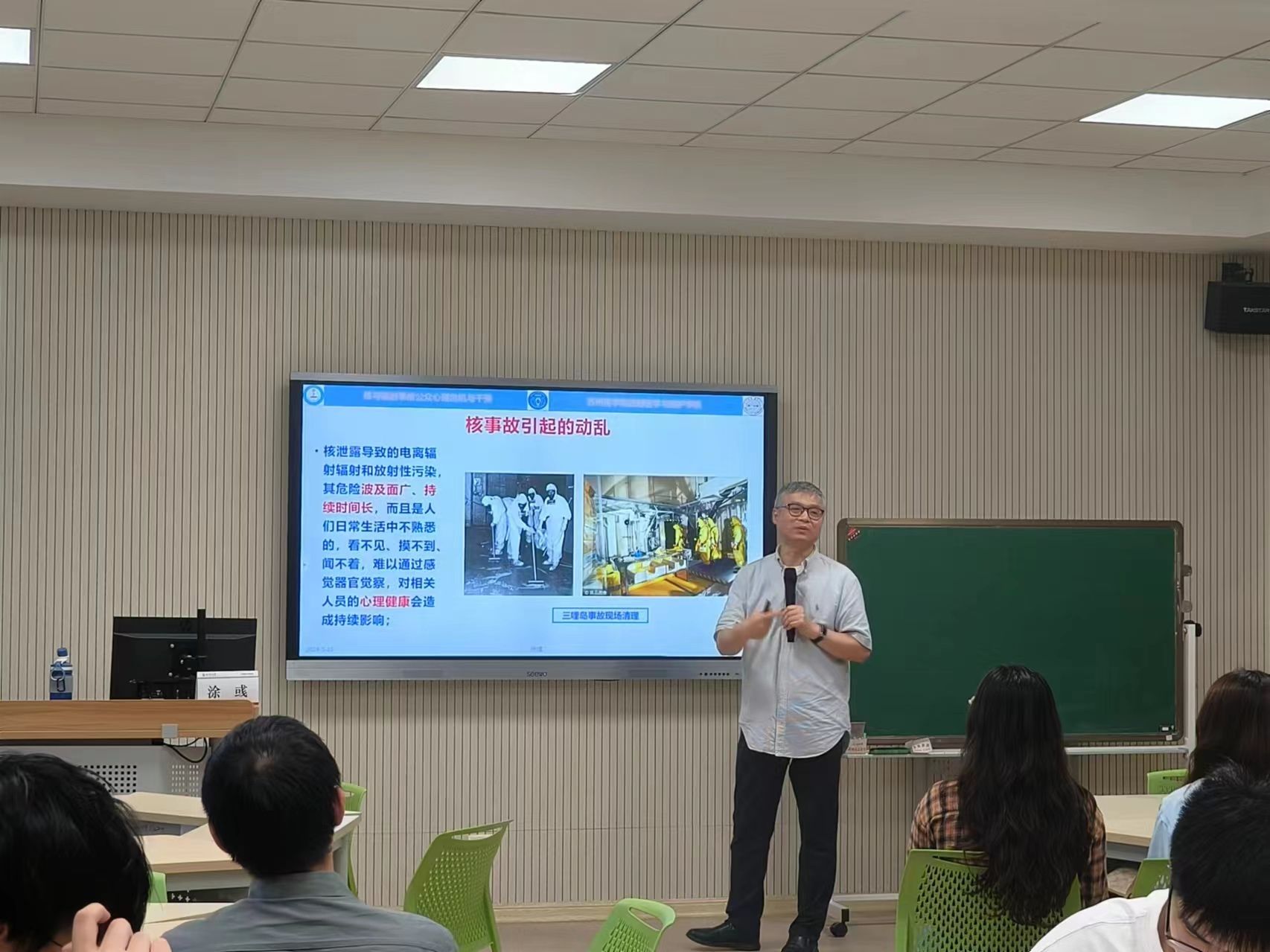 涂彧教授向师生介绍了核与辐射事故的基本概念、危害及其对社会公众心理的影响。他强调,核与辐射事故不仅会对人体健康造成直接伤害,更会对公众心理产生深远的影响,如恐慌、焦虑、抑郁等。因此,加强核与辐射事故公众心理危机与干预的研究和应对至关重要。