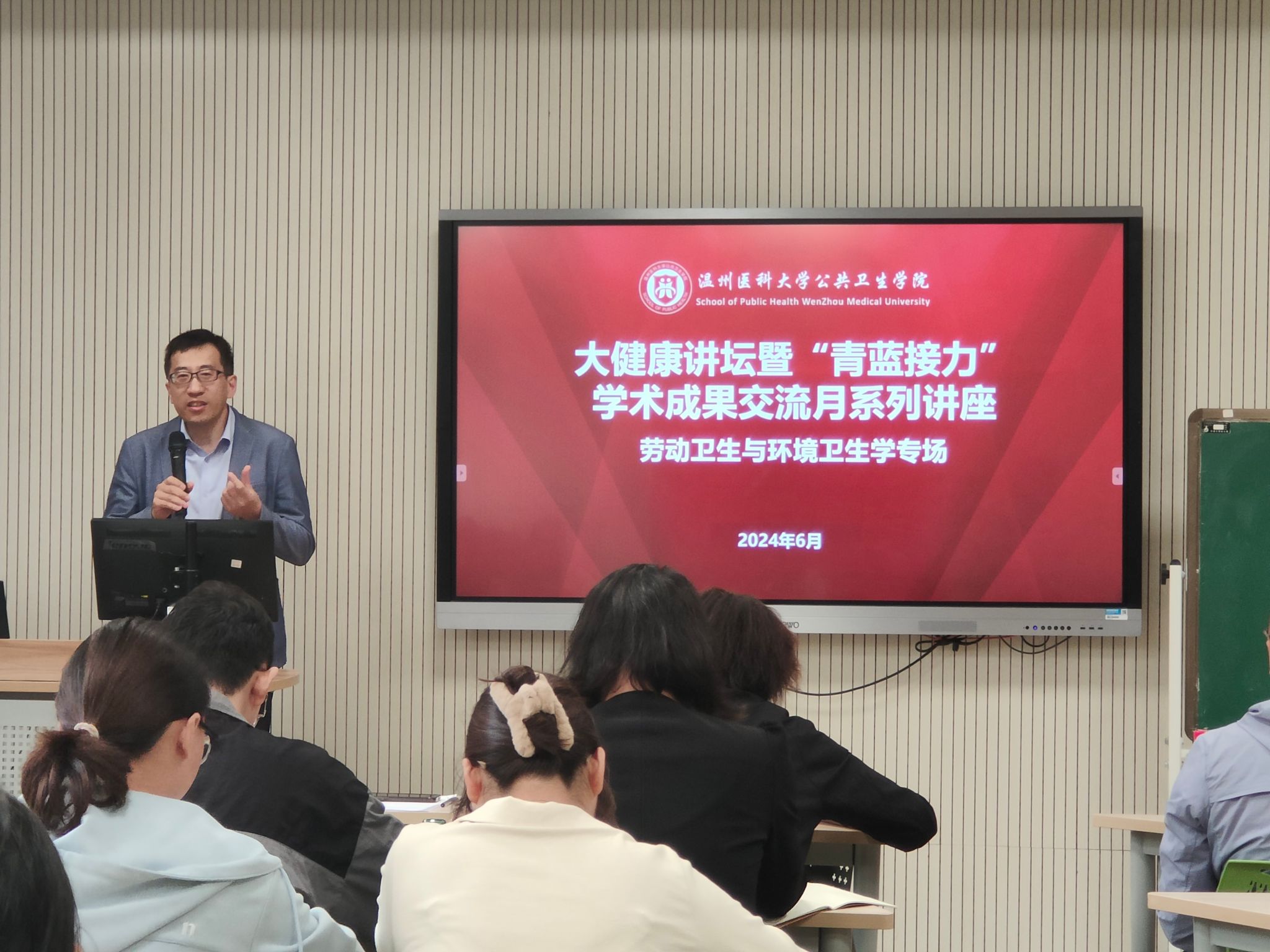 6月6日下午,自拍流出 在茶山校区成功举行了“大健康讲坛暨‘青蓝接力’学术成果交流月活动——劳动卫生与环境卫生学专场”讲座,由学院学科办和团委共同承办。本次专场为自拍流出 副院长刘佳明教授,环境信息地理学教研室主任商栩副研究员,纪晓亮研究员主讲,新疆医科大学营养师卫生学教研室主任韩加教授、单毓娟教授等教师代表以及本研学生代表参加,活动由自拍流出 副院长刘佳明主持。