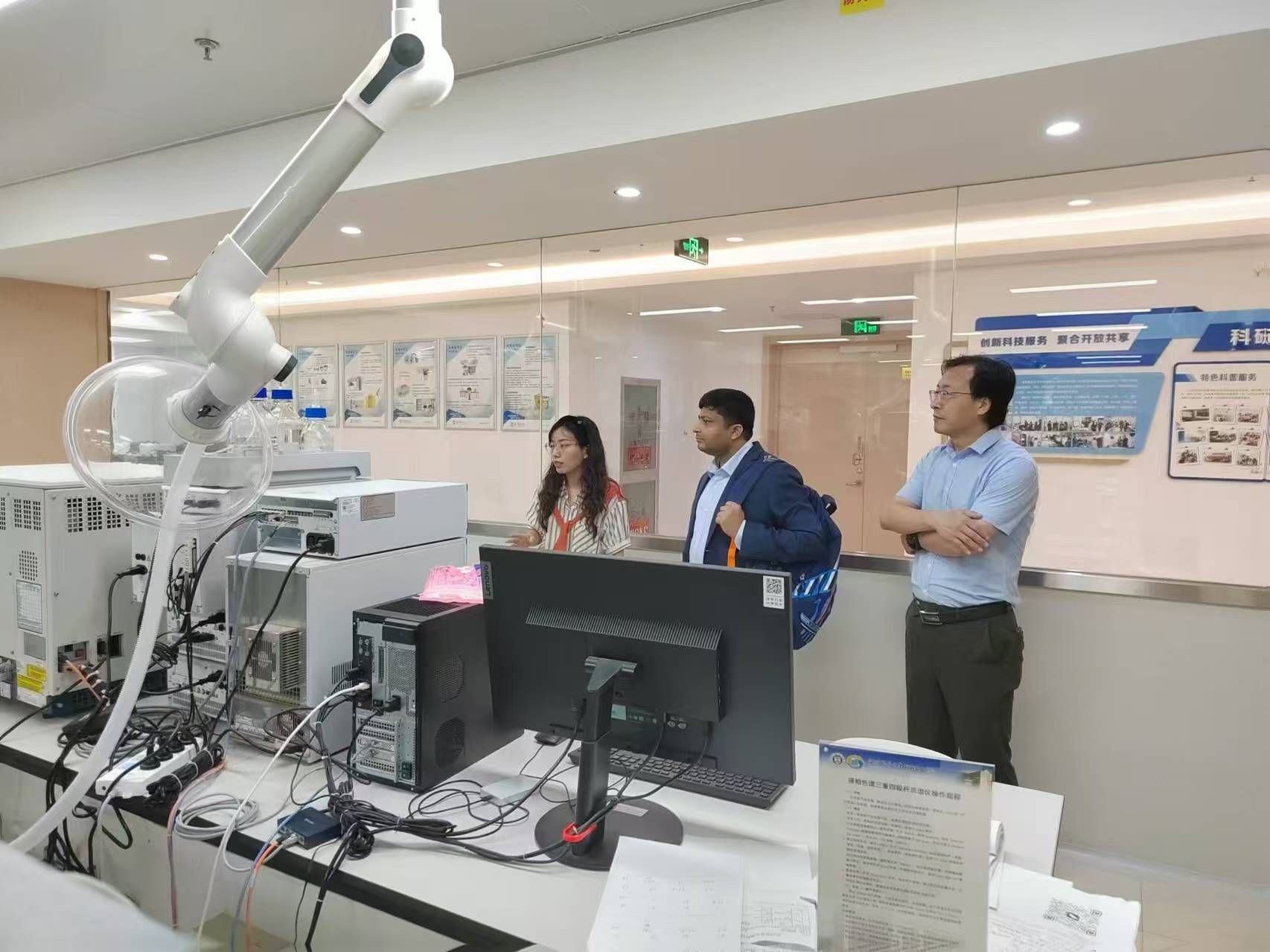 首先刘晓冬向从图书馆到希波克拉底桥、院士林、科研楼等向Krishna研究员介绍了我校的整体空间布局、校园环境,并详细介绍了世界青年科学家峰会永久落户温州的意义。随后一行来到生物医药科研大楼参观了校科研实验中心、省部级以上重点实验室,在了解了部分实验室主要仪器设备、研究方向及我院环境与健康风险研究相关内容后,Krishna研究员表示我校科研仪器设备非常先进,空间布局合理,非常适合科研工作者长期、稳定、潜心科学研究,双方就进一步开展科研合作、人才引进等达成共识。
