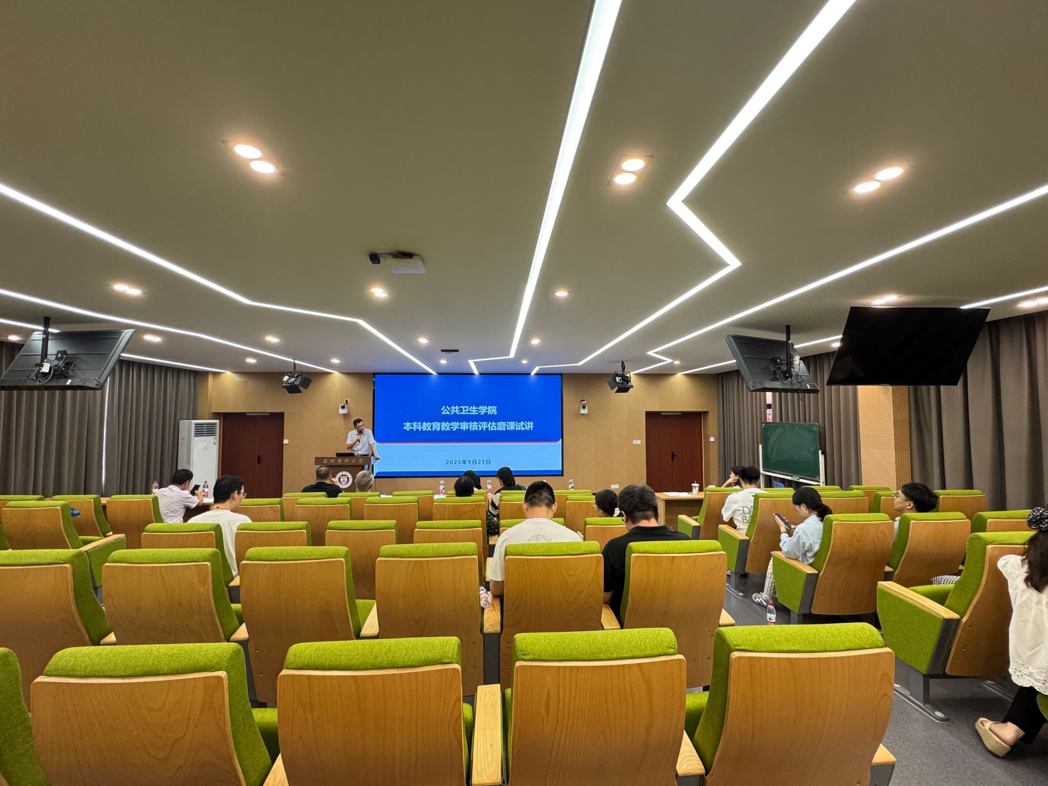 为深入贯彻落实学校本科教育教学审核评估工作的部署要求,营造浓厚的迎评氛围,自拍流出 近日在同济楼6A107组织召开本科教育教学审核评估应知应会暨磨课试讲活动,教学发展中心主任金伟琼、学院党委书记王芳、副院长刘佳明、党委副书记王张叶、党委委员钟崇洲、各学系及职能部门全体教师共同参加此次会议,会议由刘佳明主持。